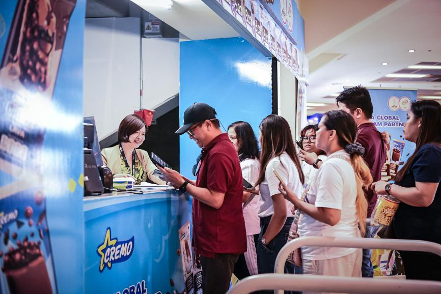 8月的吉达,室外气温直逼40℃。为全面服务现场观众,赛事期间Joyday和Cremo在场馆环廊搭建4个全天候冰淇淋供给站,为超过5万名观众提供多样化选择。小组赛中场休息期间,场馆内多次响起广播,“球迷们请注意,FIBA全球冰淇淋合作伙伴Joyday和Cremo在商店派送免费产品,先到先得!”支棒、脆筒、杯装、三明治等丰富的产品种类吸引了沙特、菲律宾、约旦、黎巴嫩等多国消费者品尝和购买。高品质原料和创新口味赢得现场观众的点赞。